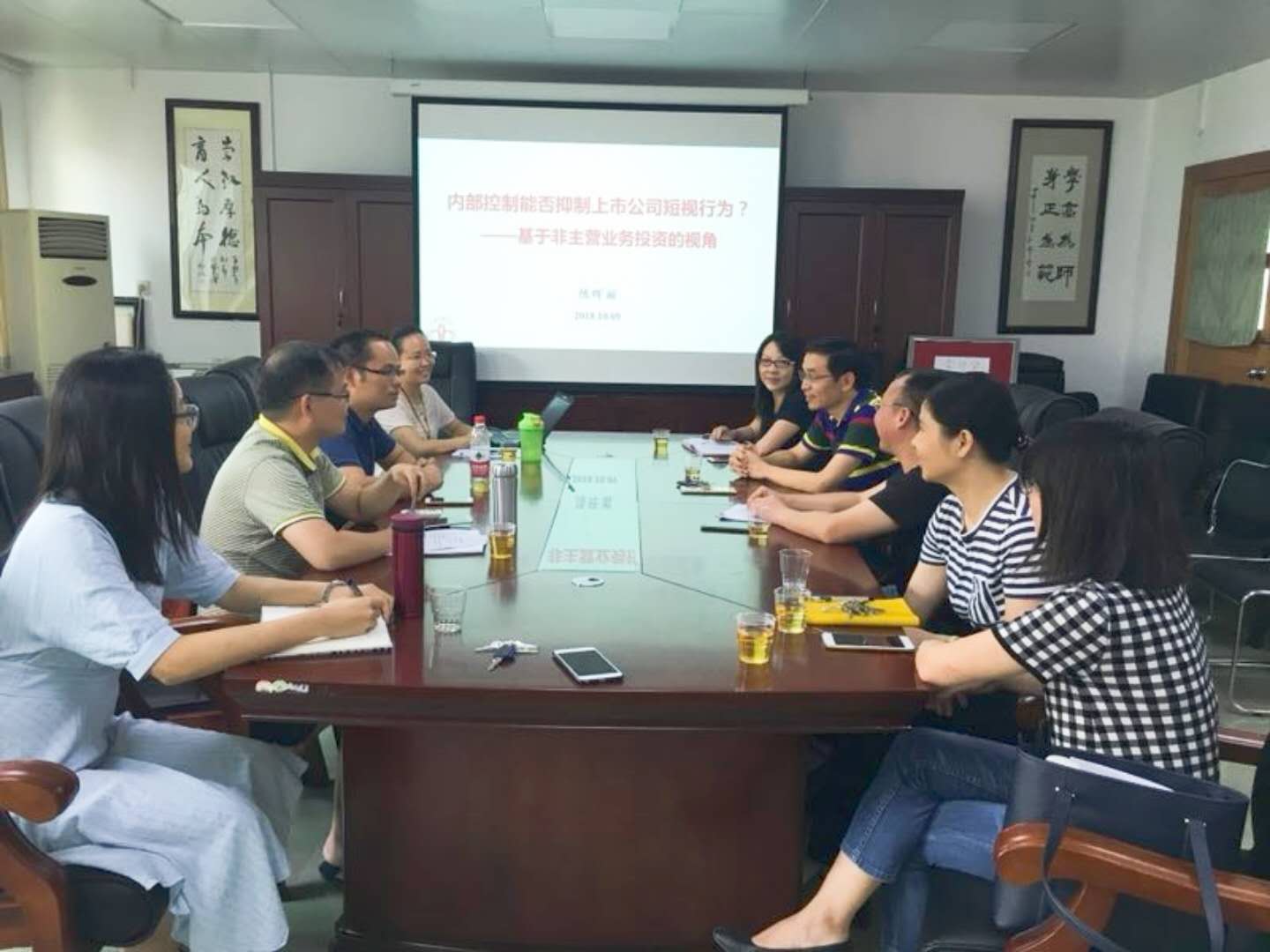 本期论坛由William威廉英国官网陈晖丽博士报告其工作论文《内部控制能否抑制上市公司短视行为?——基于非主营业务投资的视角》。陈晖丽博士从论文的研究动机、制度背景、文献回顾、假设提出、实证分析等方面,对论文做详细而深入地介绍。William威廉英国官网的文芳经理、马鹏副经理、章刚勇老师、舒利敏老师、廖菁华老师、蔡竞云老师,以及来自信用管理公司的唐龙海老师、颜海明老师,参加了本次论坛。老师们展开了热烈的讨论,从论文选题、理论推导、变量设计等方面提出建设性意见。陈晖丽博士表示将对工作论文进行细致修改。参会人员均感深受启发,受益匪浅,实证研究的思维、观念上有了很大程度的提高,并希望此项活动能长期开展下去。