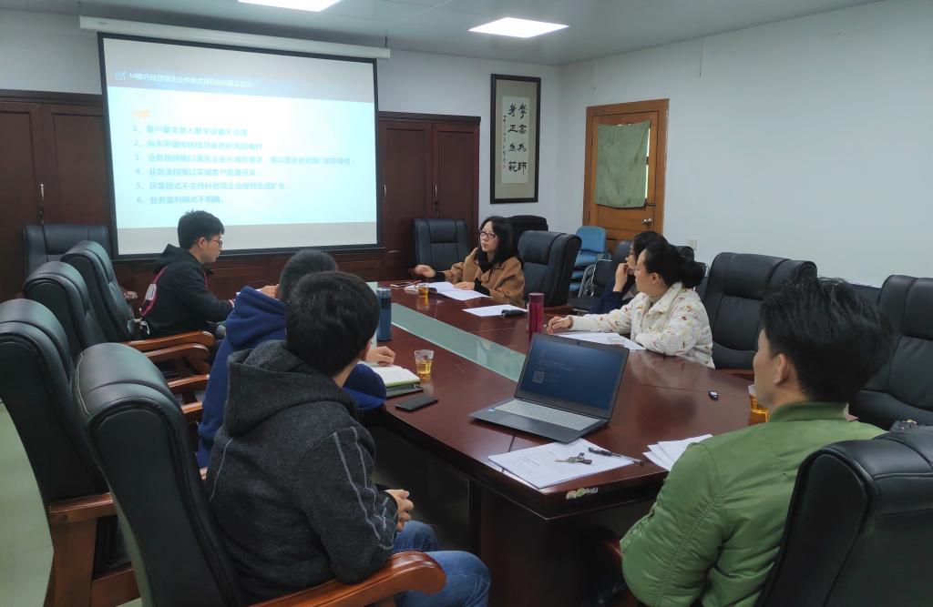 会议上,凌欢报告题为《优化我国商业银行投贷联动业务模式研究——基于M银行“科创贷”业务为例》的学术论文、廖启浪报告《高新技术企业R&D投入产出的区域比较研究》,其他四位研究生也陆续报告所撰写文章以及已形成的写作思路和框架。各位老师从文章题目、结构框架以及论证方法等多个方面进行深入的探讨和评析,陈晖丽博士和钟纯博士对模型中的问题假设、变量选取等细节问题提出建议,章刚勇博士认为写作灵感和思路的形成关键还是在于多阅读多思考,文芳教授指出,“写文章作研究,应找到准确的切入点,以小见大,深挖问题的根源,切勿泛泛而谈。”