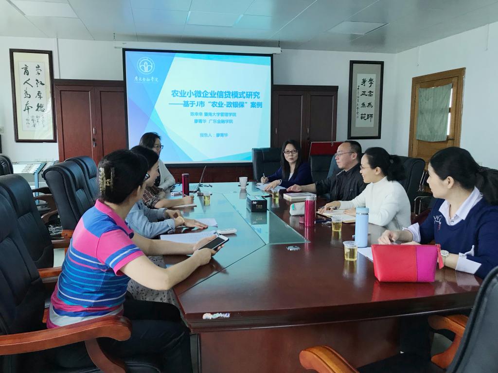 会上,基于农业小微企业融资难的热点问题,廖菁华老师首先阐明了开展本次研究的意义以及预期达到的研究目的,并以广东省某市“政银保”农业信贷模式作为样本,以案例研究的方式进行深入分析。廖老师由点及面,从“政银保”信贷模式出发,对比分析了我国传统农业信贷模式与新型信贷模式的差异;由表及里,剖析了融资难现象背后的多重深层原因。研究发现,政府部门在整个信贷过程中扮演的角色以及对市场干预程度的拿捏是新型信贷模式能否行之有效的关键。
