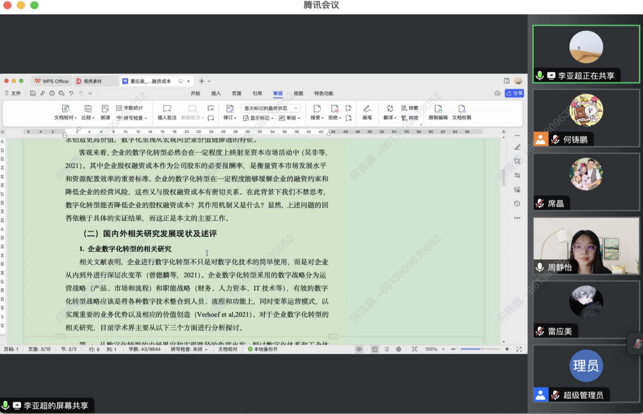 2023年9月27日19:30—21:30,William威廉英国官网第四十九期“会计博士论坛”在腾讯会议举行,此次论坛活动的主题是公司老师就22级研究生开题报告进行审读并提出修改意见。本次活动分两组进行,分别由温雅丽博士、周静怡博士主持,周静、朱郭一鸣、李亚超、席晶等老师参与点评,共五十余名师生参加。