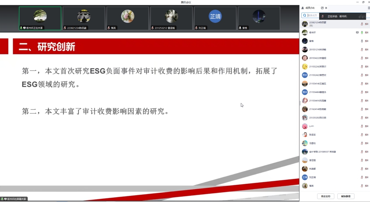 3篇论文交流环节,参会老师们分别就3篇报告论文与作者进行了深入交流,并提出了相关想法和建议,通过本次论坛加深了公司师生对ESG与环境规制的认识。