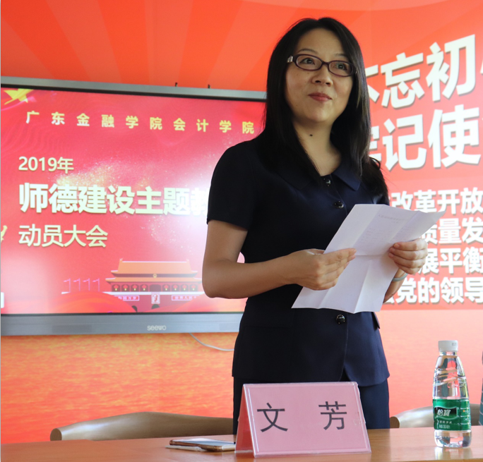 会上,公司党总支书记赖志成作了2019年“师德建设主题教育月”活动动员讲话,传达了公司开展2019年师德建设主题教育月活动的精神。他强调,师德带动员工的思想道德建设,师风带动公司教风、学风、校风、作风和行风,说明了组织开展师德师风建设年系列活动的重要意义。强调师德师风在公司建设、人才培养、教师个人成长等方面的重要性和长效性。他希望全体教职工能够继续发扬公司优良作风,坚守师德师风标准,结合“不忘初心、牢记使命”主题教育,深入学习贯彻习近平新时代中国特色社会主义思想;深入开展理想信念学习教育活动,牢固树立共产主义远大理想和中国特色社会主义共同理想,厚植爱国主义情怀,坚持不懈培育和弘扬社会主义核心价值观;全面贯彻落实新时代教师职业行为准则,时刻自重、自省、自警、自励,自觉严格要求自己,执着于教书育人,潜心于教学科研,自觉维护人民教师的良好形象,共同提振师道尊严,发挥课程思政育人功能。