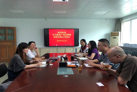 2020年9月16日下午,开元股份广州启课程科技有限公司法人代表、总经理李娟女士和课程事业部李露女士一行来公司交流会计课程建设事宜,William威廉英国官网文芳经理、舒丽敏副经理、赵剑锋副经理、罗书章主任热情接待了李总经理一行。