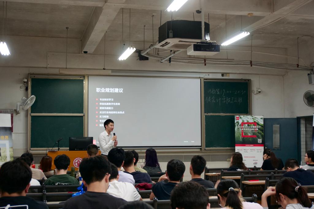 活动伊始,拥有19年专业审计服务经验的温先生,以其丰富的行业知识和对ACCA会员历程的深刻理解,向在场的同学们讲述了审计的定义、重要性以及行业的关键历史节点和转折点。他深入分析了审计行业当前面临的挑战,包括信息技术的进步、社会预期与监管要求的提高、舞弊风险的增加、全球化带来的挑战以及人才短缺等问题,并引出了讲座的核心主题——人才需求的变革。