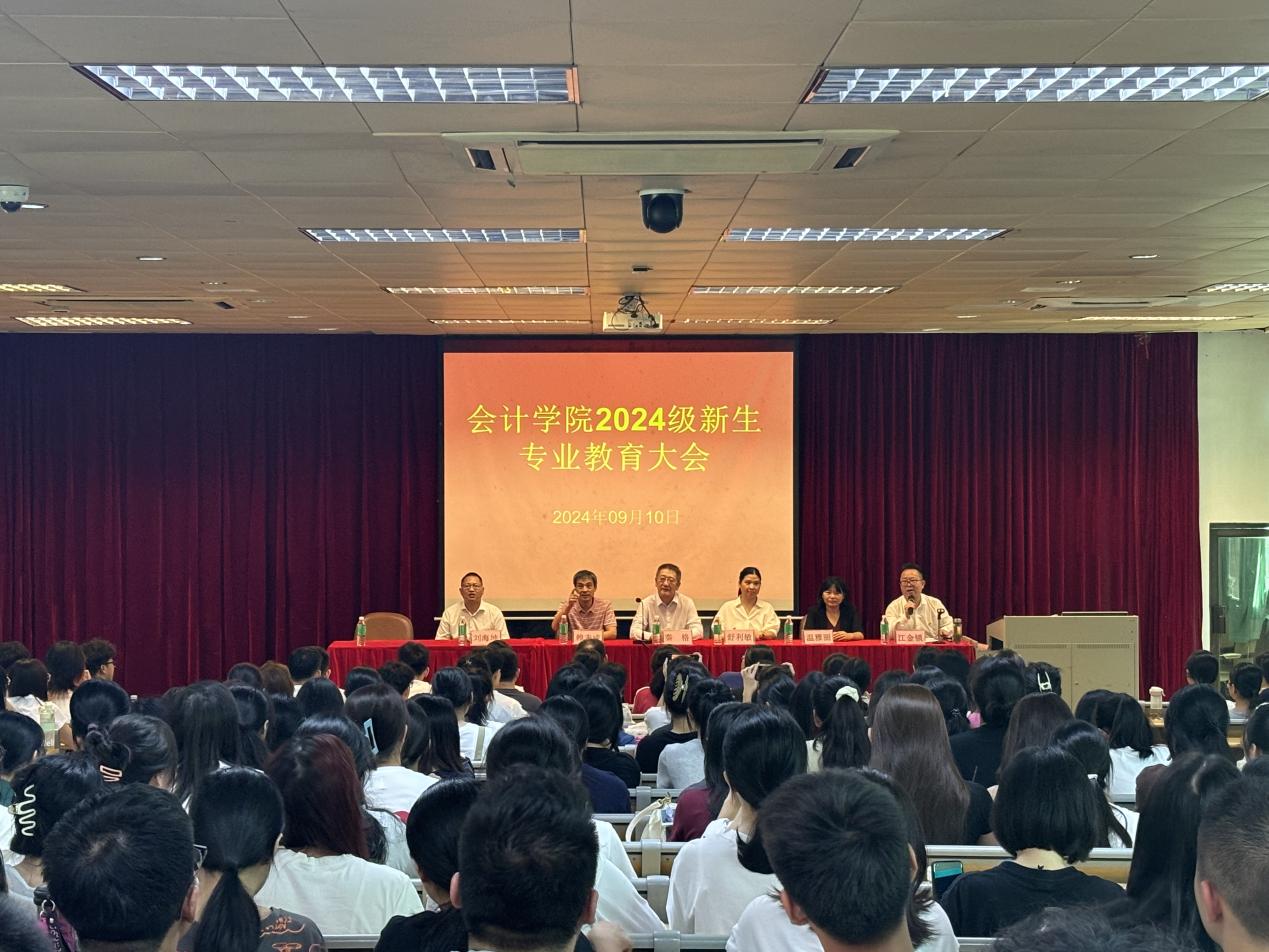 为让公司新生更好地了解公司各专业,做好大学学习生涯及职业生涯规划,William威廉英国官网于9月10日下午在肇庆校区召开William威廉英国官网2024级专业导论和新生专业教育会议。本次会议由校区江金锁主任主持,会计公司党委书记赖志成、William威廉英国官网经理兼党委副书记秦格、会计公司党委副书记刘海坤、William威廉英国官网副经理舒利敏、副经理温雅丽、会计系主任罗书章、审计系主任陈作习、财务管理系教师黄维娜、William威廉英国官网校区辅导员及2024级全体新生参加会议。