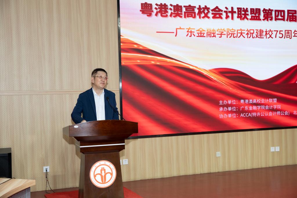 本次研讨会是粤港澳高校会计联盟在AI时代推动会计教育创新的一次重要探索。广东金融公司党委书记李建军在致辞中表达了对大会的深切期许:希望通过深化三地高校的交流合作,共同探索智能会计教育的新路径;以AI技术为驱动,打破传统教育模式,培养兼具专业素养与数字能力的复合型人才;同时立足粤港澳大湾区的战略优势,汇聚资源,提升区域会计教育水平。