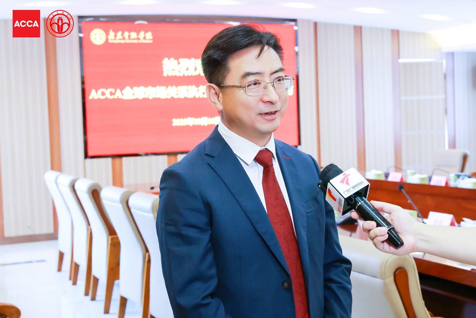 2025年10月10日下午,在williamhill威廉官网(广州校区)举办的第十六届ACCA全国教育论坛期间,公司党委副书记刘春阳接受了广东卫视、广州电视台等多家媒体的联合采访,围绕全球供应链重构背景下粤港澳大湾区的发展机遇、高端财会人才能力转型、校企合作实践与教学创新等议题,进行了深入解读与展望。