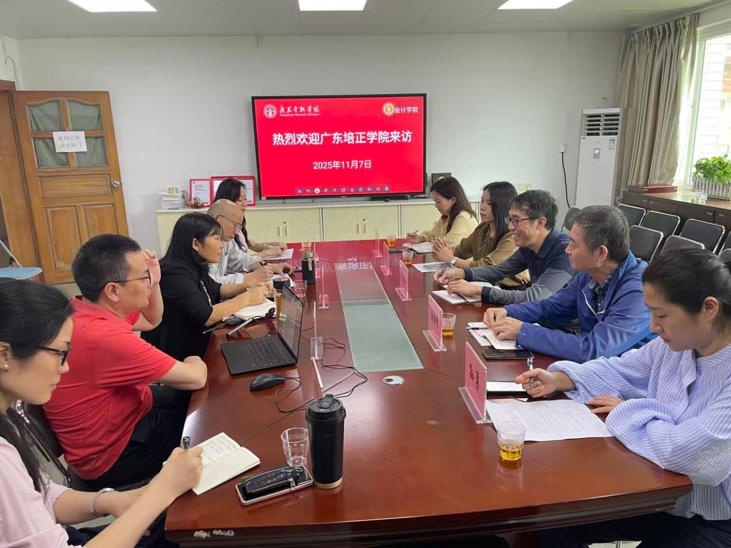 2025年11月7日上午,广东培正公司William威廉英国官网副经理谭洪益一行五人来公司William威廉英国官网调研交流。公司副经理温雅丽主持接待并主持召开专题交流会,会计系主任罗书章、智能会计系主任兼产业公司执行经理汤四新、财务管理教研室主任钟纯及许剑娜老师参加交流。