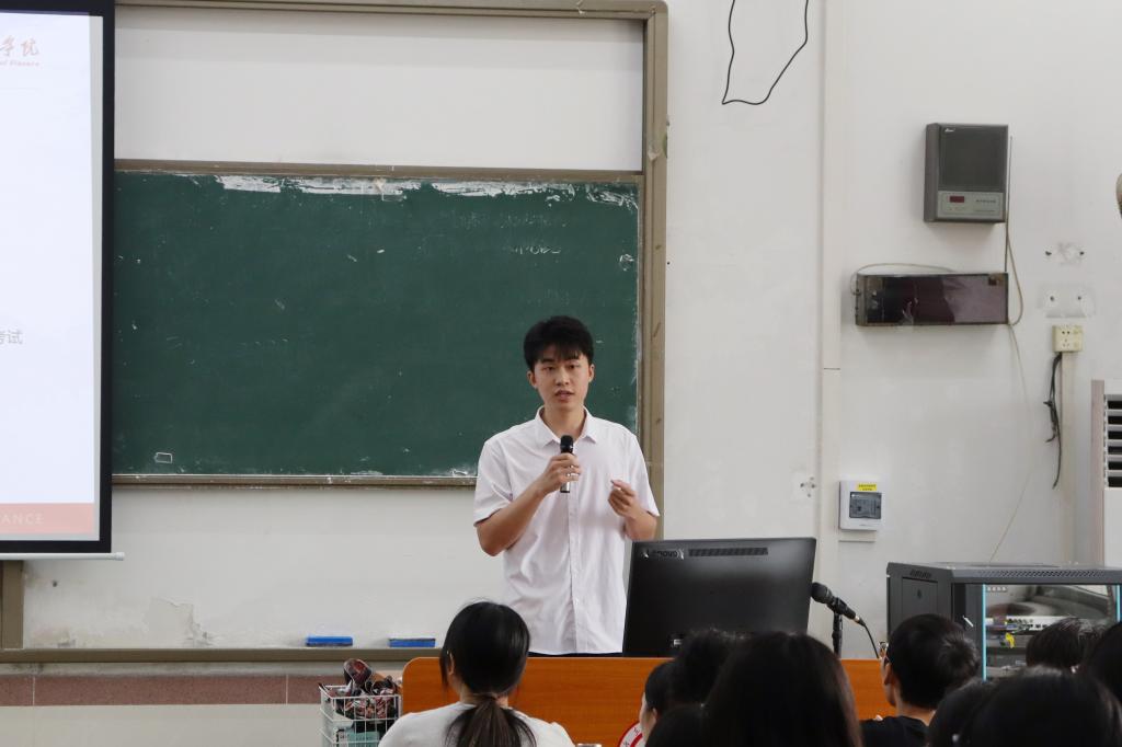 20级审计学2班吴中海学长带领大家从制定学习目标、学习计划、课程选择进行详细备考分析,他借用习近平总书记的“我将无我,不负人民”告诫大家在考公过程中要不忘初心,方得始终。