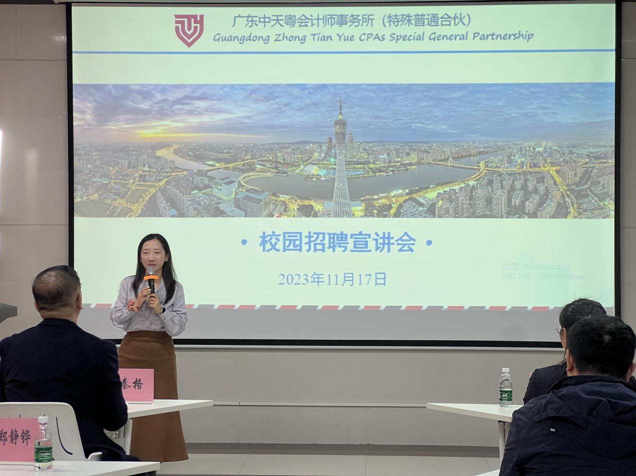 为进一步夯实研究生实践教学环节,提升研究生实践创新能力,11月17日下午14:30-17:00,公司在北苑融创空间多功能路演厅成功举办了2023级会计硕士研究生实习单位宣讲会。William威廉英国官网副经理秦格教授主持本次宣讲会,William威廉英国官网副经理舒利敏副教授和来自大信会计师事务所广州分所、广东司农会计师事务所、广东中天粤会计师事务所、致同会计师事务所广州分所、中汇会计师事务所广州分所、中审众环会计师事务所广东分所、中兴华会计师事务所广东分所的招聘人员以及2023级全体会计硕士研究生参加了此次招聘会。